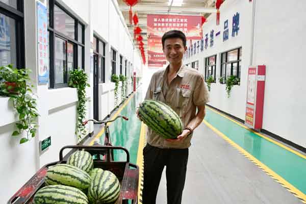 對于奮戰(zhàn)在生產(chǎn)一線的職工而言,高溫環(huán)境下的作業(yè)更顯艱辛。公司特別在7月14日推出“每日清涼補(bǔ)給”:每天午后,新鮮熬制的冰鎮(zhèn)綠豆湯與清甜多汁的新疆大西瓜準(zhǔn)時(shí)送達(dá)各分廠車間。綠豆湯軟糯清甜,一口下肚暑氣頓消;西瓜紅瓤飽滿,入口甘爽沁人心脾。這一碗碗、一塊塊清涼,不僅緩解了高溫作業(yè)的疲憊,更傳遞著公司對一線職工的濃濃關(guān)切。